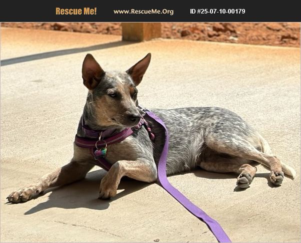 Sweet blue healer/Australian Cattle Dog that we found on our property 1 year ago. We have 4 cats. She has not been compatible with them. She loves human companionship (kids and adults alike) and is like a Velcro dog! We hate to let her go because of her sweet personality but hope she will find a forever home �%9D%A4��%8F