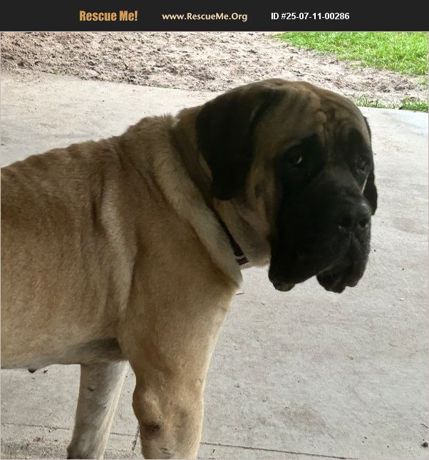 This animal is available to licensed rescue groups only. Please do not enquire unless with a licensed rescue group. Beautiful, loving fawn female Mastiff. Needs a new home. Picked on by other dog in group.