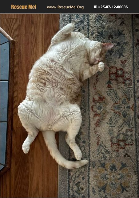 Chance is an 8yo indoor cat who who loves to snuggle, nap, and receive head rubs all day. He often curls up next to me when I'm on the sofa or sitting in my gaming chair. Chance has interstitial cystitis, which is well-managed with prescription urinary SO kibble. He cannot eat non-prescription food/treats. He is neutered and fully vaccinated. Chance takes time to be acquainted with other cats but is generally friendly. He is also friendly with dogs as long as they aren't aggressive. He is bonded to his sister, an 8yo calico named Mirage. Chance is a very sweet boy, and I hope he can find a happy loving home with you (3
