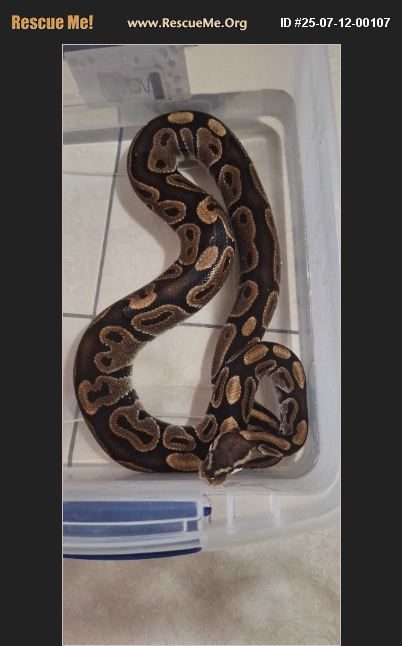 7 year old Male ball Python. Super friendly and great with kids. Comes with everything you need including the tank, accessories, misting system, a stand with cabinet space perfect for storing things