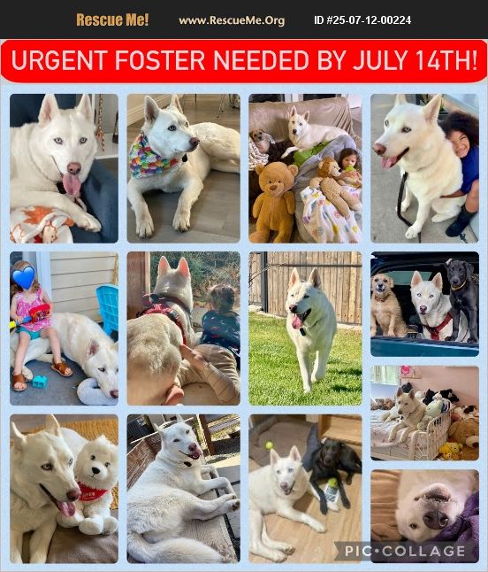 VIDEO INCLUDED: EMERGENCY FOSTER NEEDED BY JULY 14TH! PLEASE read. PLEASE share. Si's life depends on it. This is a plea for help. We are out of time. Si, a gentle and loving 4-year-old Siberian Husky, will be sent to a high-kill shelter if we don't find a safe place for him by July 14. Please don't scroll past him. Si is not just another dog. He's family. He's a sweet, calm soul with stunning crystal-blue eyes who adores children, gets along with respectful dogs and even cats, and asks for so little. He's housebroken, crate-trained, and not a flight risk. He won't even jump a baby gate. Si is everything you could hope for in a companion. And right now, he needs a hero. His owner is facing unimaginable hardship and heartbreak and is desperately trying to do the right thing for her family and for Si. What she needs is time- just 2 to 3 months of foster care while she secures safe housing. Si has a deep bond with the owner's young daughter, who cries for him every night. They're not giving up on him. They just need help. They are also willing to have Si go to a forever family to save his life. We are begging- don't let this be the end of Si's story. Please, if you can open your heart and your home to foster, foster-to-adopt, or adopt Si, reach out immediately. Even if you're not in a position to help, SHARE this post. It truly takes a village, and right now, Si needs his village more than ever. Contact Jennifer at Pumpkin Pawz Rescue (TEXT preferred): (714) 366-8170. Every minute counts. Si is literally perfect. Let's not let him down. Please share. Please care. Please save Si!