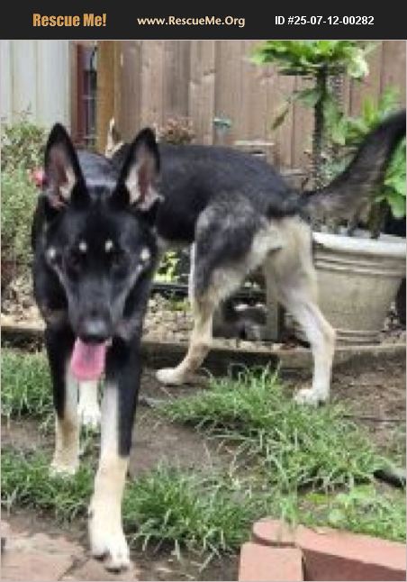 Young female German Shepherd. One of two available dogs. Other dog is listed as Tova. Priority given to adoptee that takes both. Prefer not to separate dogs since they're been together sine birth.