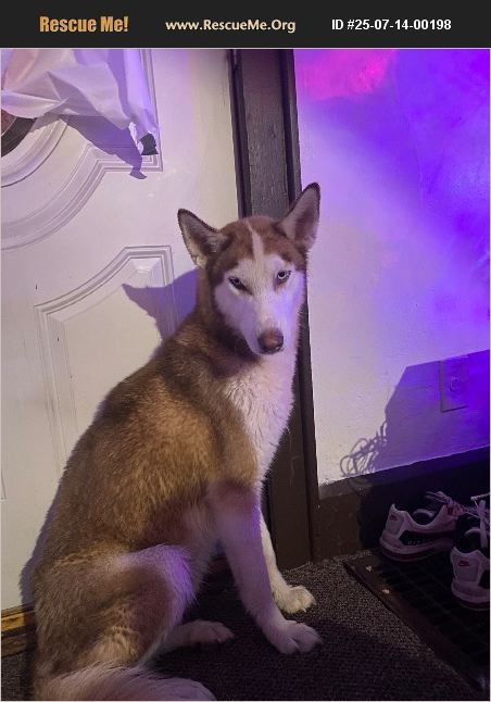 She is a tan and white Siberian husky about 13 months old! Found her across the street from my home outside with no one living in the house steadily. I've sheltered her since the end of winter, but I'm not supposed to have her in my small home. I don't have a fenced in yard or room for her. She has anxiety being alone does OK around my little dog but just super energetic and pounces around. She is pretty much potty trained, but if she doesn't get outside, she doesn't have a problem using it wherever she can. She knows a couple of commands like sit and give me your paw. She definitely needs a little bit more training as far as not jumping on someone but all in all she's a good dog and needs a stable place where she can be a big dog.