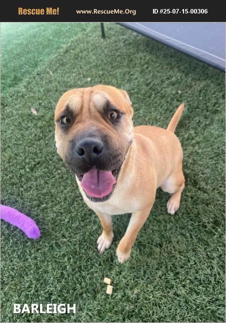 Barkleigh was brought to us by the Sheriff's Dept. She is a 2-3 year old Shar Pei/Pit mix, weighs 45 lbs., is current with her vaccinations, dewormed, heartworm negative and she will be spayed and chipped. Very friendly, playful girl, active, likes toys, good with other dogs and kids.