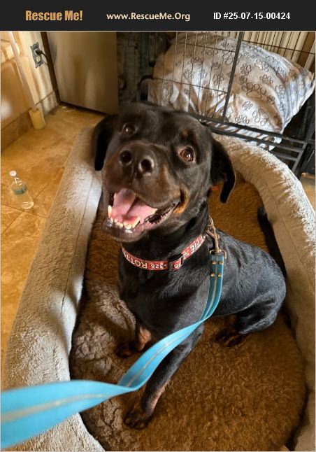 Young Rottweiler male probably around 10 months old. He know sit, down, come, wait, spin, paw, and loves to show off his talent for a treat. Good with people and other dogs that he is introduced to properly. Knows basic obedience and walks well on a leash with a training collar. He is potty trained, crate trained and he does not mark everything he sees. All of our dogs would benefit from ongoing training.he is going to make someone so happy. Our Adoption Process... If you are interested in adopting one of our fun loving not so rotten rotties, you will be asked to fill out a questionnaire that will allows us to get to know you better and to make sure the dog you are looking at is a good fit for your family and lifestyle. You can access our questionnaire by going to our website, www.rottenrottie.com click on the forms tab, and fill out the questionnaire and submit it online. After we review your answers, if we feel that the dog that you are interested in, is not a good fit for you and your family, we may recommend a different rottweiler companion. After we determine which Rottweiler(s) is the best for you, we will set up a time so that you can meet him or her at their house, where they will feel most comfortable and act as they normally do. We will require a home check to make sure the dog is going to a good home. An adoption contract will be signed to finalize the adoption and we do ask for a rehoming fee of $500 for most adults, $350 for most of our seniors 6 years and above for any rottweiler mix of any age (except puppies) . Our fees for puppies fluctuate depending on how much we had to invest into them or their litter, and weather they are purebred or a mix. These funds are necessary so that our organization may continue to rehome rottweilers. ALL of our dogs are sterilized, fully vaccinated and microchipped, heartworm tested negative and come with a collar and a leash. We have also addressed any injury or illness that they had when they came to us, or received in foster care. These problems will be disclosed to the adopter prior to adoption. please be advised that in almost all cases we will not adopt our dogs to folks who live in different states. On rare occasion, if we feel that it is a PERFECT for both you and the dog, we sometimes will break that rule for our neighbors who live in Las Vegas. If you live in Vegas and would like us to consider you, please fill out an application.