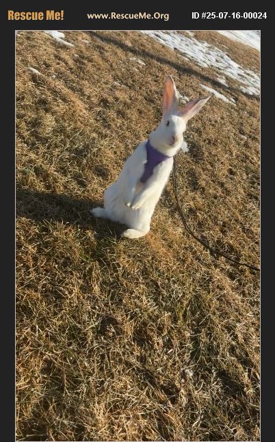 This girl is available. Bringing in new new baby in October and she needs rehomed. She won't stay in her oversized outdoor kennel we got her and we have exhausted all routes at this point to rehome her. She is aggressive with my 2 neutered bunnies, she's spayed as well. But she marks all over our basement and she is stressed out from us having to constantly chase her around to catch her. She's sweet to people, but would be best kept as a single bunny.