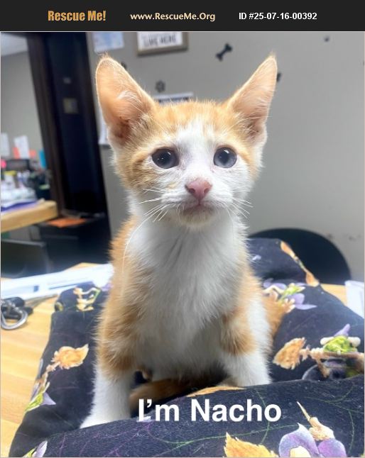 Nacho is a sweet and playful young kitten. Born 4/29/25 Apply at projecthopearf.org