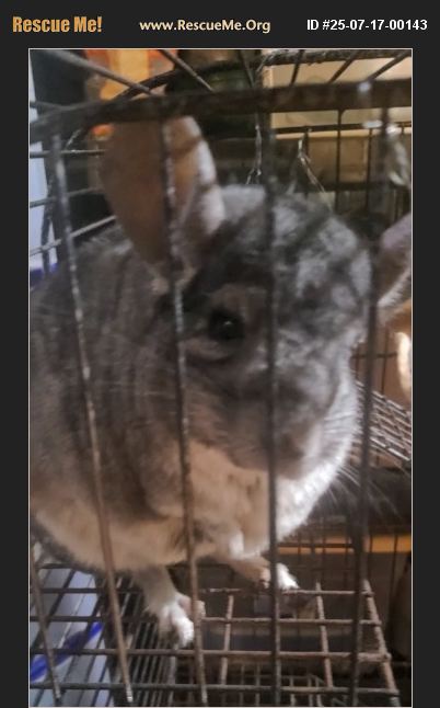 Grey Male Chinchilla in need of new family. Tried to reunite him with his own, but were unsuccessful. Would love to see him living with a new chinchilla friend or two.
