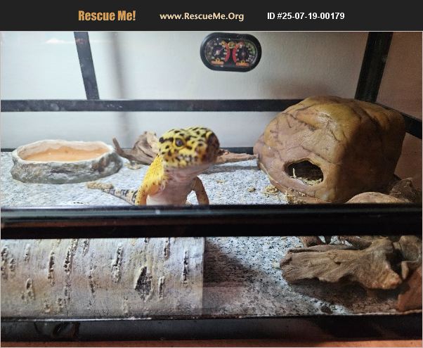 3 year old Leopard Gecko named Jack. He eats like a champ! Loves looking out his enclosure! Moving and can't take him! );