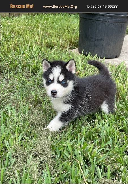 Husky boy born June 10th all black and white with blue eyes! Very playful will come with 1st set of shots and deworming!