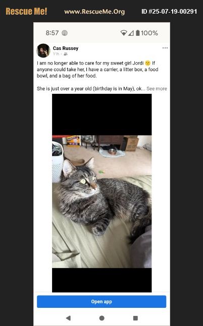 Jordi has a sweet personality. She loves to snuggle. We can't keep her any longer. We don't want to take her to a kill shelter. She is my daughter 's first baby, however my daughter is having a baby.