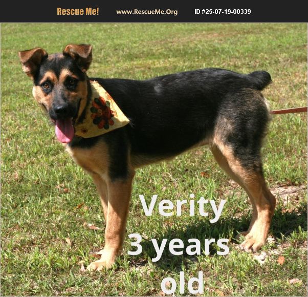 Verity is a 3 year old, 65 lb, German Shepherd Dog/Cattle Dog Mix (we think). She is a very quick learner, high energy little lady that loves people. She is crate trained and is HOUSEBROKEN!! She is quickly learning leash manners and basic obedience. She is good with kids, and dogs but does have a high prey drive so you need to be cautious with cats. Verity is spayed, microchipped, vaccinated, dewormed and heartworm negative! Her adoption fee is $250. To apply go to roseacresrescue.org.