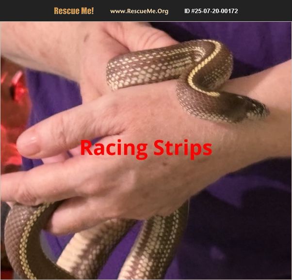 Racing Strips eats Frozen Thawed Hoppers every 7-10 days - is easy to hold and sheds well. Has 67 tall enclosure that can be purchased as well.