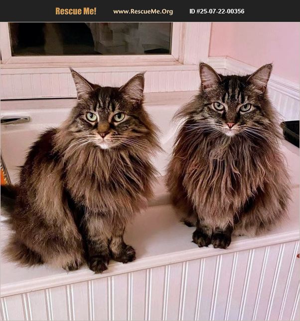 Two 8 year old Maine Coon littermates who have lived together since birth. Live in a household with two + dogs. Indoor/outdoor on a ranch. Very sweet, litter box trained.