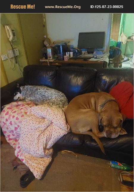 Humphrey is a six year old desexed male Neaopolitan Mastiff - Dogue de Bordeaux cross. That's him on the right in the photo, the one on the left is my dog, who he knows. Humphrey has become homeless due to his owners selling their house and, for sadly predictable reasons, not yet being able to buy another. He has a quiet and affectionate though somewhat stubborn nature and would respond very well to kind and considerate treatment.