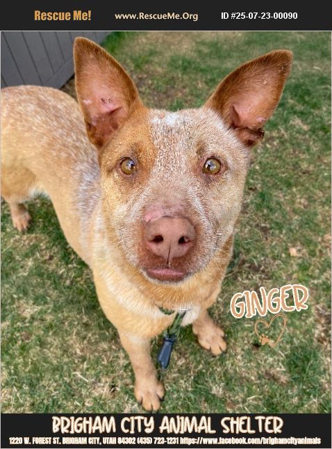 Meet Ginger! 6 years old 32 lbs Spayed Female Red Heeler Mix Adoption Fee: $40 Sweet Ginger has had a rough road. She was originally found at the county landfill with no one coming to claim her. Since then, she's been adopted and returned twice, not because she's a bad dog, but because she just hasn't found her perfect match yet. Ginger is a gentle, sensitive soul who bonds deeply with her people. She is very clingy and loyal, and her protective instincts run strong, true to her Heeler heritage. While she's not aggressive, she can become startled or overwhelmed, especially by strangers or in loud, chaotic environments. Ginger needs a calm, structured home with a person or family who understands dog behavior and can respect her space. She thrives with outdoor access, as she doesn't enjoy being cooped up indoors for long stretches. She's insecure around loud noises and sudden movements, so patience, predictability, and understanding are key to helping her feel safe. She's done well in doggy playgroups and may enjoy a mellow canine friend, but we always recommend a meet and greet to be sure. Ginger isn't for everyone, but for the right person, she will be a loyal, loving companion who just needs to feel safe. Come meet Ginger and see if you're the steady, understanding home she's been waiting for. All adoptions are upon approval of the adoption application only Shelter Hours: Tues-Fri 12-6pm Brigham City Animal Shelter 1220 W Forest St, Brigham City, UT 84302 (435) 723-1231 https://www.facebook.com/brighamcityanimals