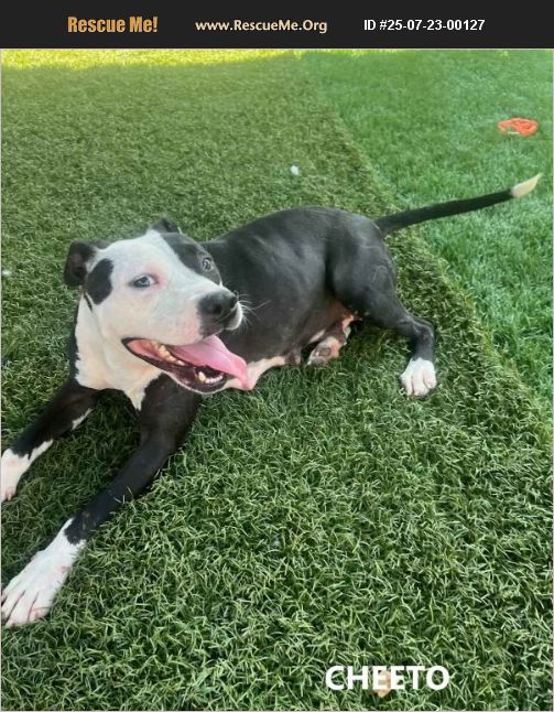 Sweet Cheeto was picked up as a stray and brought to the shelter. Really friendly, playful, funny girl who is 4 years old, current with her vaccinations and dewormed. She is heartworm positive and does receive monthly heartworm prevention. She enjoys toys, is good with other dogs and kids.