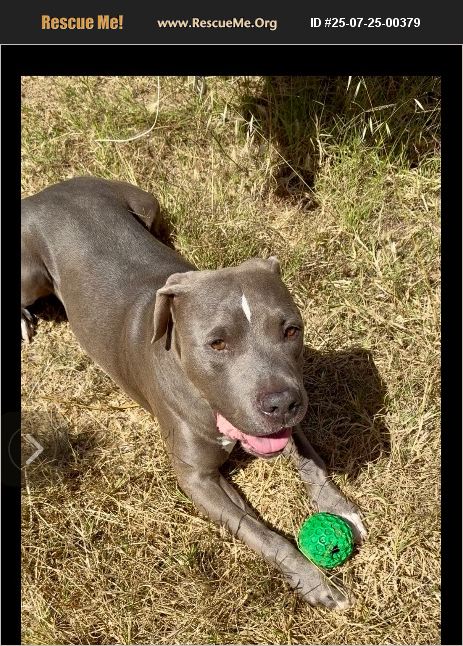Rescued off kill list Devore Scared abused malnourished when he arrived Blue is so mellow now that he is safe but lives chasing balls!!! He will need to be socialized around other dogs He requires training to leave dogs alone because of past trauma