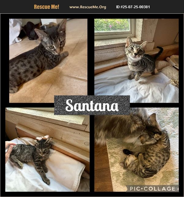 Santana is the coolest boy kitten with the most unique spotted coat! 14 weeks, a gorgeous bengal/tabby mix. He purrs upon pick up! Friendly & playful He is great with other cats, used to a small dog and children 5 years & up best. Spayed, tested negative for felv/fiv, vaccinated, microchipped, fully vetted. We'd like to see applicants with a current cat so kitten is not alone. Apply for Santana at: www.whiskersrescuefl.com *Required apps first step Florida residents only
