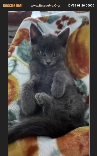 Sammy is a beautiful russian blue. She does great with the other cats but untested with dogs and young children. Litter trained, current on vaccinations and will be spayed and microchip when old enough.