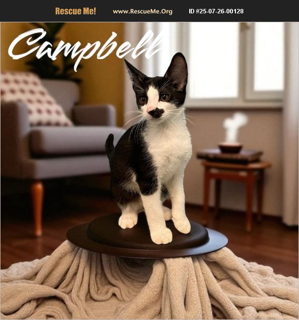 Campbell is a crowd pleaser kitten. He welcomes a person with purrs and asks for loving. Campbell plays hard with everything and can be a bit rough-and-tumble. He's that guy on the team who always has a good-natured joke and supports the little guy.