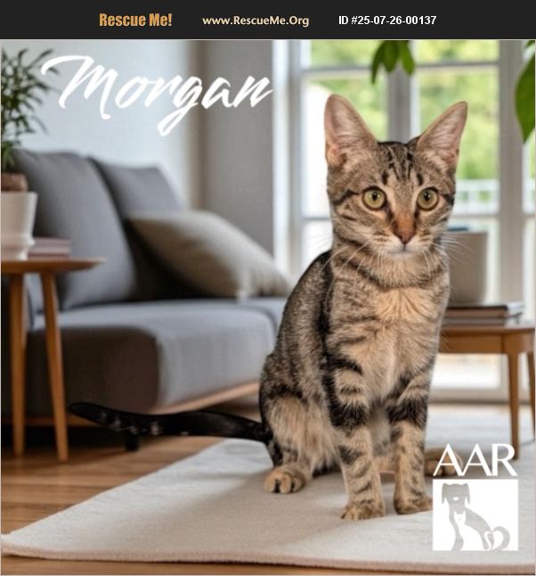 Morgan is a playful and confident kitten. She loves to play, and enjoys being loved and petted on when playtime is over. She adores little stuffed toy mice and often carries a couple to her bed. Morgan also likes playing in cat tunnels, chasing jingly toy balls, and trying to subdue a broom. She was good with her fosters family's two teenage sons, and adult cats, but stayed clear of their large cat friendly dog.