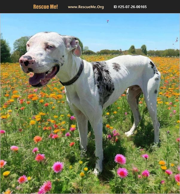 Sleepy is a stunning Double Merle Great Dane boy.�%A0While he's not Deaf, he may experience a little light sensitivity or shadowing in bright sunlight-but it doesn't slow this sweet boy down one bit! Sleepy is great with all dogs and has wonderful manners-he's both house and crate trained. His gentle nature and calm demeanor make him a dream companion, whether he's lounging by your side or enjoying time with his doggy friends. Looking for a gentle giant with a soft soul and eyes you'll never forget? Sleepy is ready to melt your heart. Please spread the word to help Sleepyfind his forever family! Share this post, tag your friends, and let's make sure he finds a family that will play with and give him all the love he deserves. White Kisses requires all dogs to be in training within thirty days of adoption. Training is crucial for dogs to learn lifelong skills and to understand their place in the family pack. It is also essential part of getting to know each other and to help your pup become a well-mannered adult GREAT Dane! For more information about White Kisses adoption process and an application please visit www.whitekissesgreatdanerescue.com/adop