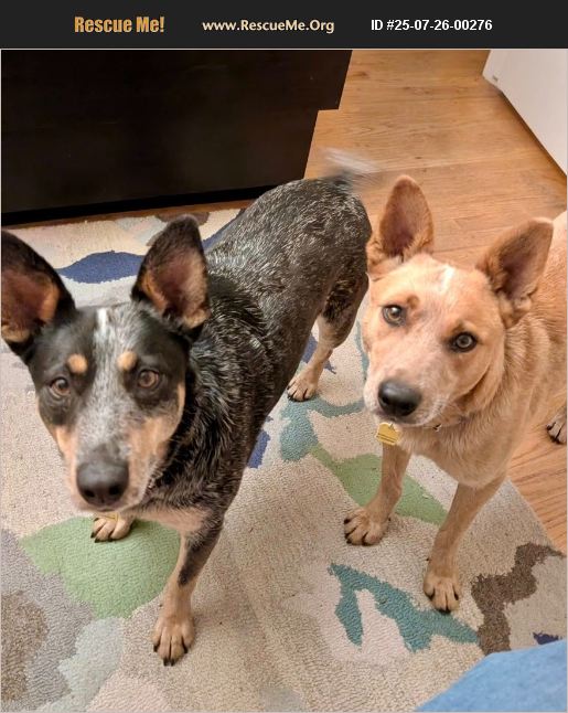 Jake (red) & Millie (blue) are a bonded pair of pure bred Australian Cattle dogs, found as strays along with their puppies. The pups got adopted quickly, DNA showing 100% cattle dog. Jake and Millie have recently returned to CCHDR. The family that adopted them opened their home and hearts to this bonded pair, furthering them tremendously over the last couple of months. Nobody else was stepping up to do it. The family poured blood, sweat, and tears into truly domesticating these two and the pictures are living proof. Old habits die hard and Jake and Millie simply aren't cut out for city life. Adult dogs, bonded pair?�'�|not high up on people's 'want to adopt list' apparently. This time around, the pool of potential candidates gets even narrower as we look to place them exclusively on acreage where they are free to be themselves, chasing flies and squirrels, digging, and self-exercising. Here is what their foster family has to report: 'They've made progress on loose leash walking, especially when walking separately. We've also worked on basic commands and they have Sit, Stay, Down, Shake with about 70% compliance. They know to Sit and wait to be released before they eat. They love squeaky balls and toys and have figured out on their own that if they bring the balls back to the rug, I'll throw them again. Millie likes to use the balls to squeak back at the squirrels in the backyard. They are truly happiest when I can take them to the rugby field where they can just cut loose, off leash. Millie chases flies and Jake sniffs and digs and they both chase balls if I throw them for probably an hour.' If you have land, breed experience, and are looking for a plug and play pair, please consider Jake and Millie. They are estimated to be 2 years of age and no more than 30lbs each; sterilized and UTD on vaccines. They are dog social, in true heeler fashion need a minute to warm up to new people, NOT cat tested. They must be adopted together. Currently located in Sacramento, CA area until August 2, then it's back to the rescue ranch in Templeton. More photos, updates, and their full story: https://www.facebook.com/media/set/?set=a.1323396215288696&type=3 Interested in Jake and Millie? Please complete an application at: http://bit.ly/CCHDR_App