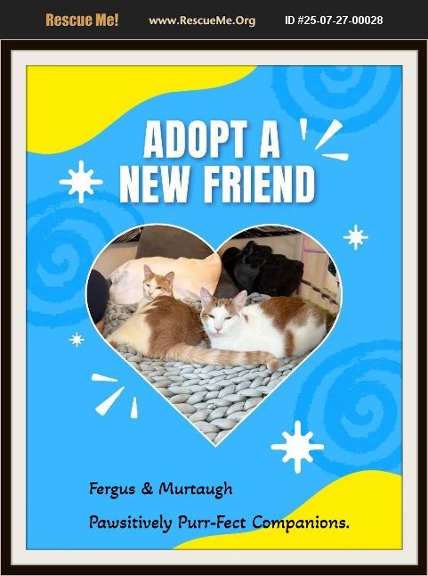 Searching for pawsitively purr-fect companions. We are charming, laid-back, lap kitties. Brothers - Fergie and Murtie Adopt us! We will let you know we are around by strolling by you and rubbing up against your legs, or a slight head bump. We are the best work-from-home kitties! Murtie will sit on your lap or on the side of your work area and be the best work assistant. He will occasionally pop in on your work zoom meetings. People love him on the work zoom meetings. Murtie is often told how cutie he is. Fergie is also a social kitty who enjoys pets and people time, but needs some time to monitor the bird and squirrel activity outside, too. Open a treat bag and we will come running. Oh ya, we do not miss treats ever! Need some down time or a nap after work, hey, we are with you! Let the purrs begin.... and off to dreamland we go. We both love naps and sitting in your lap, not at the same time, of course. We are social, outgoing boys looking for rubbies and catch some music or news, too. We are brothers. We would prefer to be adopted together. There is another option. We have a sister, Marcie, who Fergie also likes to hang out with, just in case you would prefer a boy and girl combination. We have buff and white colored, silky soft fur that is so relaxing to pet. When we are not playing, we are snuggling with our people. We are polite, well mannered, and most of all are great snuggle buddies at bed time, too! Toys - We enjoy cat springs, cat nip mice or the feather on a pole, and empty boxes to play hide and seek in are also a favorite. Paper in the boxes is an added bonus. We have been neutered, all vaccines are current, and litter trained. Kids, we would be great with kids over 10-years old. We have never been with a dog. Oh, and micro-chipped, an added bonus with all Snow Camp kitties. Our micro-chips include a free lifetime registration, too. Our adoption fee is $150 each. The rescue is running a July Adoption Special, take off $100 if you adopt both of us by August 15, 2025. What a deal! Fully vetted and micro-chipped kitties. Meow Is the Time to Embrace Your Inner Cat Lover and adopt us ....signed Fergie and Murtie.