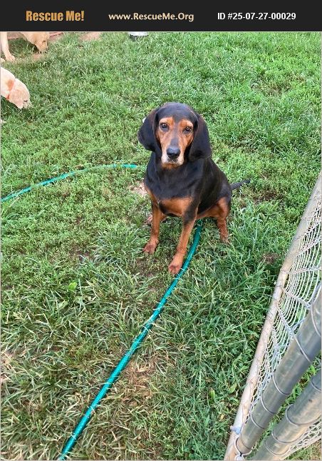 Black and tan hound. Bella is very sweet. She wants to be in the house. My husband and I are selling our home.
