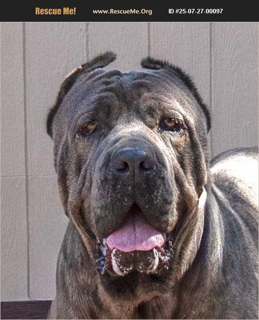 Blaze is a stunning 115 pound young gray Cane Corso with a gentle soul and eyes full of quiet hope. Recently surrendered by his owner, Blaze found himself at the shelter during a time of severe overcrowding. Despite being at risk of euthanasia due to a treatable skin condition, Blaze never stopped showing his friendly and mellow spirit to everyone he met. Blaze's life was given a second chance-but he still urgently needs a foster or adopter to truly be safe and start healing. �'ۢGood-natured and easygoing �'ۢDescribed as sweet and calm �'ۢFriendly with kids, cats and dogs Blaze deserves a soft bed, a safe home, and a family who will never give up on him.