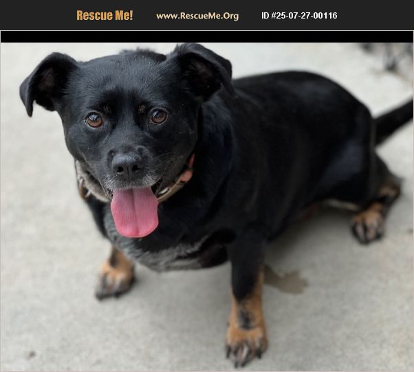 Sparkle will light up your life! This playful puppy was born 10/21/22, and is a Chihuahua/Dachshund mix. Sparkle is not very big but she is a little plump, weighing in at about 26 pounds. She is mostly black with a little brown and a white patch on her chest. We already know Sparkle is good with children and with other pets in the home. She is very playful and would do well with a family or owner that will interact with her and take her along on their outdoor adventures.