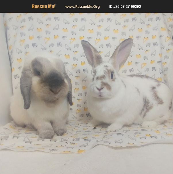 CHECK YOUR SPAM/JUNK FOLDER IF�%A0 DON'T RECEIVE A REPLY TO AN INQUIRY INDOOR ONLY HOMES Sweet Tucker and Tiffee have been adopted and returned twice through no fault of their own! We are asking for a permanent home for the rest of their little lives, please.. Tucker is the male lop on the left and weighs about four pounds. Tiffee is the female English Spot on the right and weighs about six pounds. They are both about three years old as of this posting (July 2025).. Tucker is a friendly fellow and as cute as they come! He loves his bigger bunwife Tiffee who is shy but warms up quickly. They have good litter box habits, love running through their tunnel for playtime and are looking for snuggles from a human companion. Tucker and Tiffee should start out living in an exercise pen (x-pen) otherwise known as a puppy pen. They can have that as their home base or transition to a room or a section of a room or free roaming. A cage/hutch is NOT recommended unless the door is open and an x-pen can be placed around it. If you have not purchased supplies yet, do NOT buy a hutch. All you really need is an exercise pen or two Please be over 21 if inquiring about a rabbit. Tucker and Tiffee can be seen by appointment in Lake Elsinore after a questionnaire is completed or a phone consultation conducted. On adoption day, plan to spend approximately one hour at the rescue going over paperwork and general rabbit care information.�%A0 PLEASE consult with the rescue before you purchase rabbit supplies so you can be directed to the least expensive and most appropriate rabbit essentials, especially if you've never had the pleasure of owning a rabbit! Your local big chain pet store is probably NOT the best place to buy rabbit supplies! BENEFITS OF ADOPTION FROM KRIBS FOR KRITTERS RABBIT RESCUE Delivery available to 100 miles Adoptions in Lake Elsinore by appointment Adoptions include mini ER kit Services offered: Boarding (24/7 care) Convalescent care. (24)7) Lifetime free grooming (trim nails/clean scent glands, comb/brush/dematting) Unparalleled rabbit education before you adopt Lifetime support after you adopt Starter hay and toys PLEASE WATCH TOP 10 MISTAKES RABBIT OWNERS MAKE! https://www.youtube.com/watch?v=c6IlJTgsQrU PLEASE WATCH TOP 10 REASONS NOT TO GET A BUNNY!: https://www.youtube.com/watch?v=TaoHFamRXYg THE BIGGEST MISTAKES YOU CAN MAKE AS A RABBIT OWNER: https://www.thedodo.com/things-to-know-getting-rabbit-1340963451.html A HUTCH IS NOT ENOUGH! https://www.youtube.com/watch?v=_vvlb-prX4I Kribs for Kritters Rabbit Rescue & Sanctuary Find Kribs for Kritters on: https://www.facebook.com/kribsforkrittersofficial/ https://www.instagram.com/kribs_for_kritters/ Our founder is a ONE PERSON, uncompensated volunteer, grass roots, boots-on-the-ground rescuer who exclusively rescues domestic rabbits that have been cruelly abandoned at parks, golf courses, schools, fitness trails, and other outdoor locations.