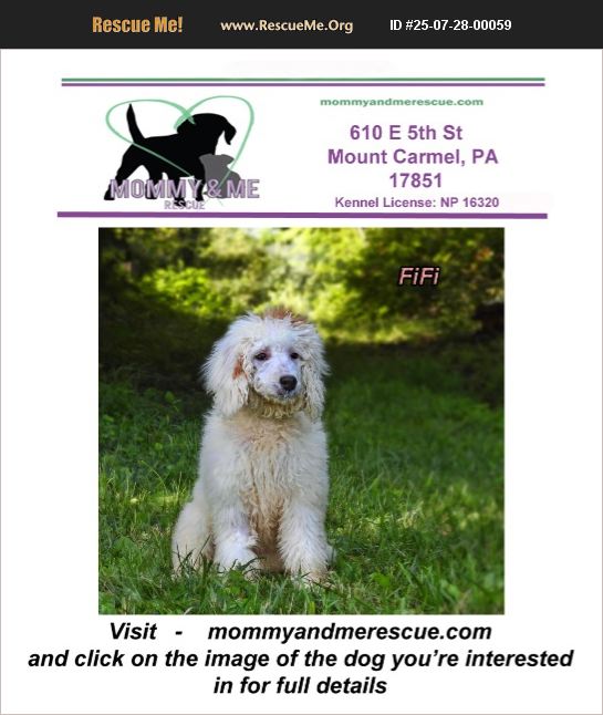 Please fill out an application here ) https://mommyandmerescue.com/adoption-application/ and give your vet clinic permission to speak with us. Spayed/Neutered, UTD on vaccines, Chipped Adoption fee 400 You must submit the application and be approved prior to meeting one of our dogs. Please add our EMAIL to your contacts! [email protected] Kennel License: NP 16320 FiFi Standard Poodle DOB: 3/11/25 Estimated adult weight : 44 pounds FiFi was surrendered because the owner was losing their home. She is a doll baby and loves adults, kids, and other dogs. She is working on house-training and doing well. She is very sweet girl and loves to play. She would love a home with other dogs and requires average exercise. She is typical for the breed and age.