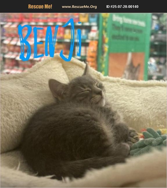 Introducing Benji 10-week-old gray male tabby kitten is typically characterized by his soft, plush fur that often has a silvery sheen, making him visually appealing. He is usually playful and curious, exploring his surroundings with an energetic spirit. This kitten's affectionate nature is evident in his love for cuddling. He seeks warmth and comfort, often curling up in laps or snuggling against his human companions. His playful demeanor includes pouncing on toys, chasing after strings, and engaging in gentle play fights, but he also has a calm side, enjoying quiet moments of bonding.