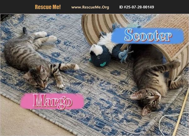 You can fill out an adoption application online on our official website. Meet Margo & Scooter - The Purrfect Pair! These siblings are ready to charm their way into your heart and home. Scooter is a sweet tabby boy with adorable white paws - like he's always wearing little socks! Margo is his equally precious tabby sister with the softest fur and the gentlest purrs. Both kittens are friendly, playful, and full of personality. They love chasing toys, exploring new spaces, and curling up for snuggles. Whether it's zoomies or cuddle time, Margo and Scooter are always in sync and ready to bring joy wherever they go. These two would love to grow up together and continue their sibling bond for life. Twice the love, twice the fun, and double the purrs! Interested? Please apply at rescueridge.com