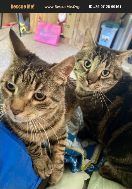 Two beautiful bonded tabby boys, Simon and Skipper. They are middle aged FIV+ cats that have so much love to give! They are the snuggliest lovebugs who just want a lap to lay on and arms to hold them. They currently do not take any medicine but are on prescription food.