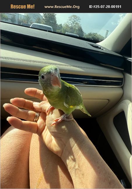 Peso is a male (?) green parrotlet. He is super friendly, loves humans and wants to be in a home with no cats or dogs so the he can be outside of his cage as much as possible. Bird experienced home preferred. Large nice cage included.