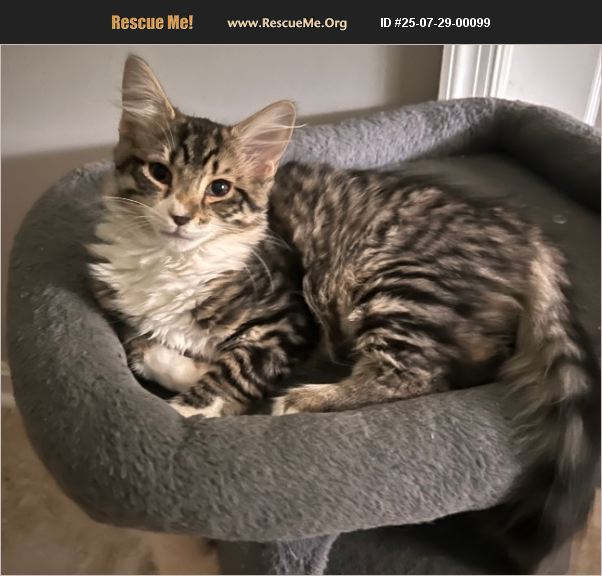 Meet Linda - she is an adorable Maine Coon looking little 12 weeks old kitten. She is stunning and will entertain you for hours..such a little love bug. She is just a little purr machine. She has grown up with other adult cats in the house as well as big dogs and are great with them all. We still need to neuter him but we are accepting applications on him now. Please go to www.rescueangelssomd.com