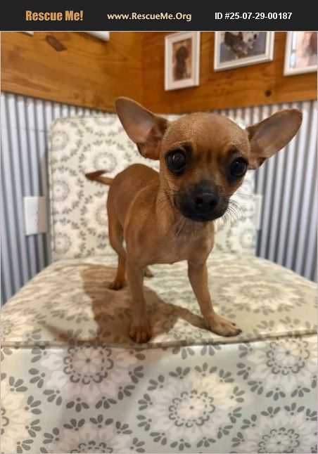Welcome Glenda, who comes to us as a stray. Glenda is a 10-month-old, 6 lb., Chihuahua mix. She is the most loving puppy ever. Give her one scratch and she will have you busy for the next 30 minutes. Glenda is working on house training at her foster home, and she's good with kids and other dogs. She is a velcro dog and prefers no other place than right in your arms. Her spay is scheduled in the next couple of weeks and she is up to date on her vaccinations. Glenda has glaucoma, likely from a trauma, in her right eye. She has started eye medication to help with eye pressure, and it has helped a bunch! She will have to stay on the eye medication. At the moment she is perfectly fine and content, however, if her eye begins to give her trouble, she may need to have it removed. If you are interested in meeting this sweet bundle of 6 lbs., please reach out to us for an application.