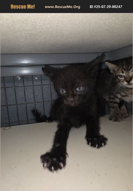 is a feral kitten that is ready for a barn home or a home. She isn't use to people quite yet but given time and patience he'd learn to trust and be a great cat.