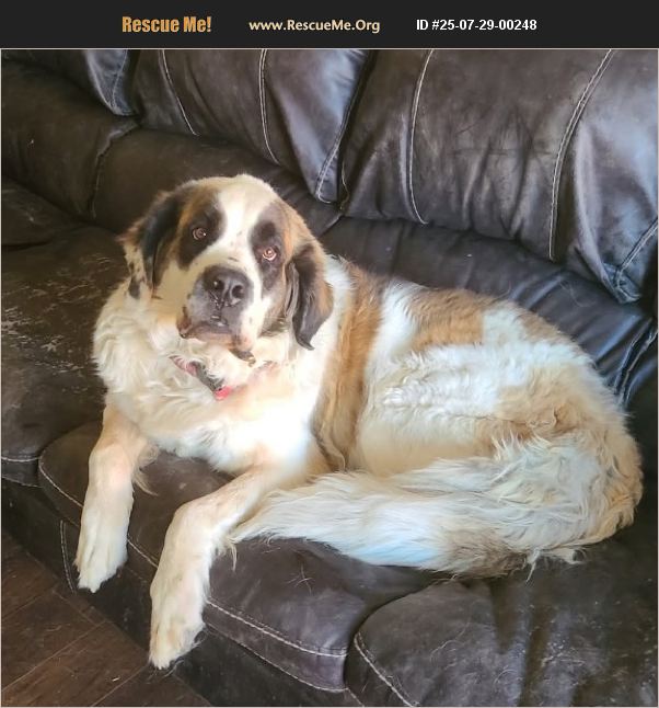Shadow is a sweet 7 yr old spayed female whose dad fell on hard times becoming homeless forcing him to surrender his 6 dogs! I can't imagine his heartbreak! Shadow was surrendered with her four 5 yr old sons Two of whom have been placed leaving her and two (Frankie and Nash) to find new homes. No known issues, Can be separated. Currently being fostered by a wonderful individual in Arizona, transportation can be arranged! Although located in Arizona, being placed through National St Bernard Rescue Foundation in Texas. Spayed/Neutered, vaccinated, Microchipped and heartworm tested. If interested, please complete application, at www.saintrescue.org state dog name, in AZ.