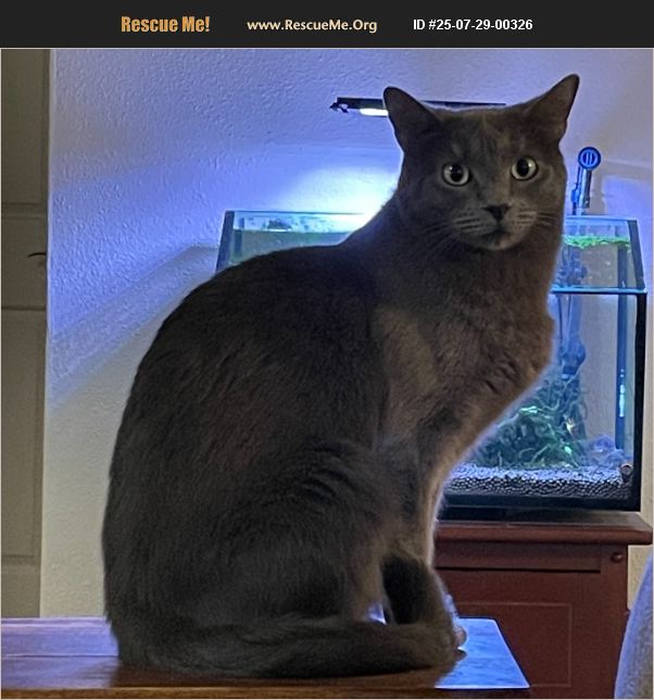 Tasha is a stunning Russian Blue with a calm demeanor and a strong independent streak. With her plush silver-blue coat and bright green eyes, she's as beautiful as she is low-maintenance. Tasha is a quiet, gentle soul who prefers to do her own thing. She's not especially interested in people, but she has a peaceful presence and would be a wonderful companion for someone who appreciates a more reserved feline personality. She's not the cuddliest cat, but she's affectionate in her own quiet way - on her terms. She gets along great with other animals and has lived happily with both cats and dogs. She hasn't spent time around children, so a calm, adult home would likely be the best fit. We're heartbroken to have to rehome her due to an upcoming relocation and are looking for a loving, understanding home where Tasha can feel safe, respected, and at ease.
