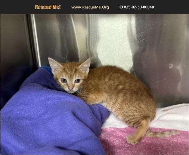 I am described as a male, orange tabby Domestic Shorthair mix. The shelter thinks I am about 6 weeks old. I have been at the shelter since Jul 25, 2025 and I may be available for adoption on Aug 01, 2025 at 2:07PM.
