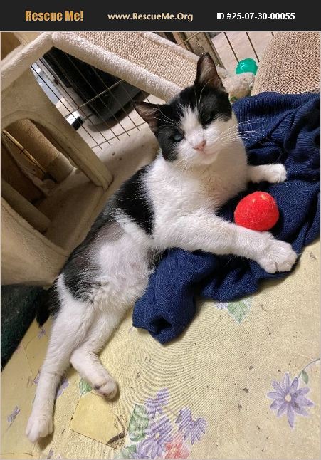 Panda is a small cat with a short tail. He weighs only 5 lbs. 7 oz. He is partially blind in his right eye, but it doesn't cause him any issues. He loves his toys, is playful and purrs all the time. He loves to sit with a person, enjoy the company, and be mellow. He is shy at first but warms up after he knows a person. He is on Hill's Biome prescription food. Approx. DOB: 9/1/20 If you would like to meet Panda, please go to https://hart-az.org/hart-cats and fill out an application. If approved, we will contact you to set up a time for a meet and greet.