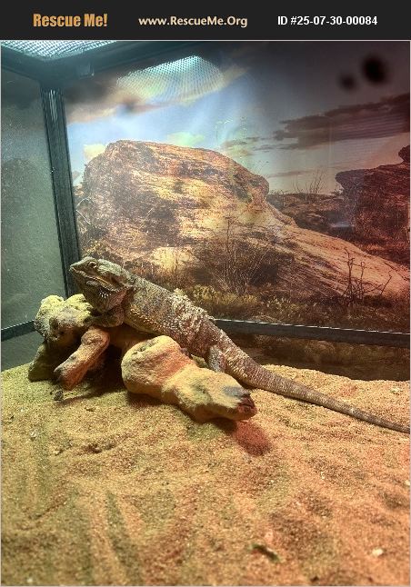Our bearded dragon needs to be rehomed. We've had it for 3 years and we are sad to say goodbye, but our home is not ideal for it. We have had shedding issues (lost several toes and part of one back leg) due to humidity in the enclosure. After moving locations in the house, changing the substrate, light set up, etc. the enclosure still is too humid. It's cruel to keep it here. Not asking for money, would prefer you just donate whatever you think is fair to Rescue Me.