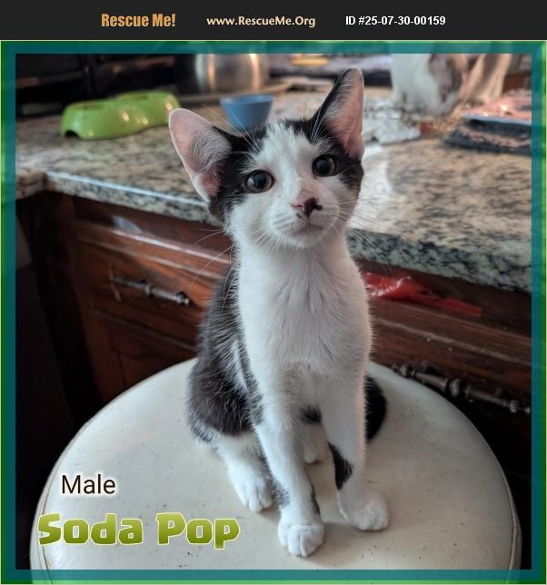 Soda Pop!! Sweet and loveable as can be! My mom had three cow kittens and a tuxedo! His name is Whiskey. We are bunk mates so he's Whiskey and I'm Soda Pop! We are just very nice, playful, sweet kitties and hope someone will find and love us. We do not have to go together, we love everyone!