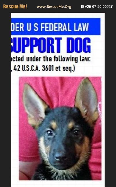 Papers NOT INCLUDED in the fee. Puppy is currently in training as an ESA canine, but can go out as a family pet. Born 5/5/25. Pretty good with house training, great in public, and with all people of all ages. The new family must provide references, ages of household members; if renting, a letter from the landlord saying that you are allowed a dog and proof that your house insurance covers this breed. PREFERENCE will be given to home owners with a fenced yard.