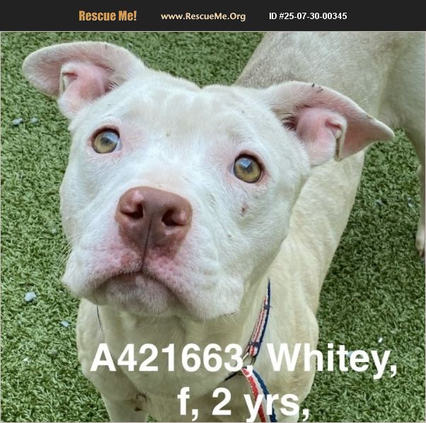 FREE ADOPTIONS THROUGH AUG 8! * weighs 39 pounds * heartworm test is currently pending * came in as part of a cruelty/abandon case with several other dogs * she is not spayed but will be * easy to leash/good leash manners * friendly, sweet, and very gentle with people * quiet and calm in and out of kennel * mellow and easy going personality * smart, knows the sit command * wants to please * gentle treat taker * loves to cuddle Whitey is a sweetheart! She greets you with tail wags and longs for love and attention. She has not had the best life and needs some good old TLC. I don't think she has ever had a bath due to her owner's neglect. Despite her sad past she is a loving, gentle, and sweet cuddle bug. She paid no mind to other dogs as we passed by them; of course we do always recommend a meet and greet with your dog(s). She is an all around sweet little girl who would love to be a part of your family. She needs to finally know and feel loved! Transport help may be available.