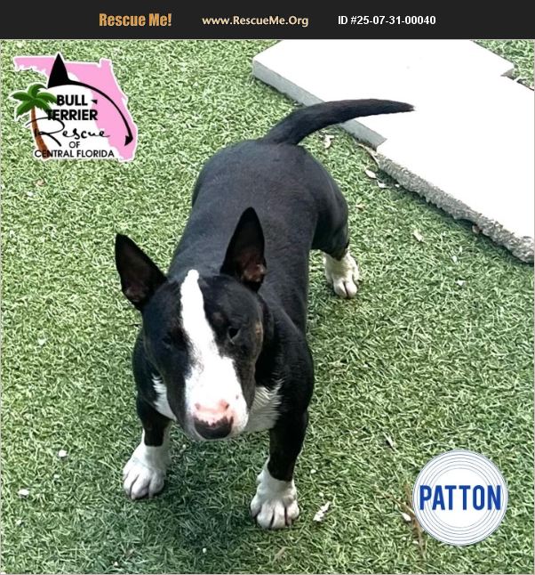 This little tank is 3 years old, 33 lbs & neutered. Patton was bought as a puppy by an older gentleman who always wanted a Bull Terrier & who is wheelchair dependent, living in a condo, with no backyard. Patton has never had proper daily exercise or an outlet for his normal Bull Terrier energy so when he started to become unmanageable his previous owner had his vet put him on Trazodone, which is a drug known to cause reactivity in dogs if used long term. Upon evaluation, we knew Patton needed professional training after we had him evaluated before taking him into our rescue program, so he went straight to the trusted team in Orlando where we train many of our neediest dogs. He initially was just a happy untrained guy who desperately needed to learn some boundaries & manners. We worked closely with the training team to safely work him through what has been a very stressful week for our team, the trainers & most of all Patton, who's whole world has been turned upside down. Patton has made tremendous progress learning to slow his thinking down & also starting to learn a recall. Patton has a long road ahead of him but we are committed to him. We share detail of his past in hopes to EDUCATE & SPREAD AWARENESS of the misuse of certain drugs. It is so important to RESEARCH THE BREED you are seeking out & to make sure you are capable & willing to commit to their needs! Bull Terriers need daily exercise ESPECIALLY puppies! Stay tuned for more on Patton who is the most adorable guy & is already making incredible strides. Learn more about our adoption process and check us out on Facebook and IG. www.BullTerrierRescueOfCentralFL.org